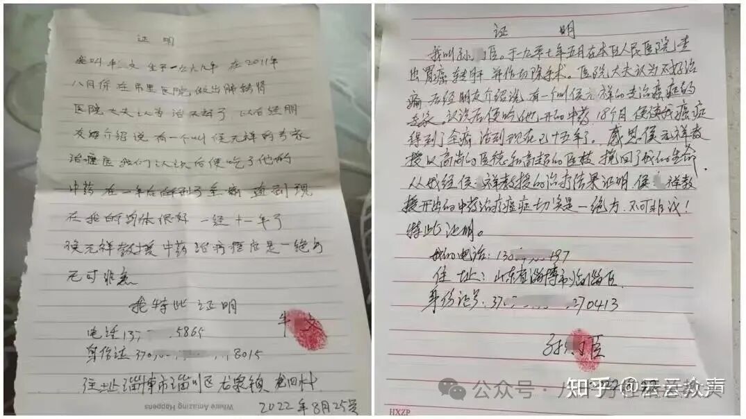 面对质疑,侯家拿出的“有效证据”更是漏洞百出。他们声称有多位患者证明药效,但经侦查机关核实了40位,其中9人否认出具过证明,剩下的要么是没确诊癌症,要么是按照侯家给的模板写的证言,还有一部分人是在接受正规手术、放化疗的同时吃了他们的药,根本没法证明是“神药”起了作用。这些证言证词,因为缺乏客观性和关联性,最终全被法院驳回。